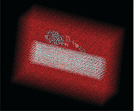 CHARMM Chemistry at HARvard Molecular Mechanics, or CHARMM, a suite of modeling software for macromolecular simulations, is used to model the complete system of the enzyme cellulase digesting the sugar cellulose in water (reddish haze). J. Brady, M. Himmel, L. Zhong, M. Crowley, C. Brooks III, and M. Nimlos. |