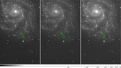 The supernova, dubbed PTF 11kly, occurred in the Pinwheel Galaxy, located near the "Big Dipper," in the Ursa Major constellation. It was discovered by the Palomar Transient Factory (PTF) survey, which is designed to observe and uncover astronomical events as they happen.