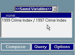 save the variable you are seeing on the map, and use it in further calculations. To do this, click on the "Save Variable" button. A window will open where you can modify the variable name if necessary. After you save the derived variable, it will be available under the <<Saved Variables>> dataset, as shown in the following picture.