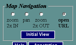Note that when you open the map for the first time, it is in the "Open URL" mode, and you will need to select either the "zoom in", "pan", or "zoom out" mode to make navigation work.