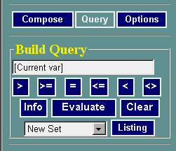 Second, build an expression in the Query window by clicking an operator and typing in a value.